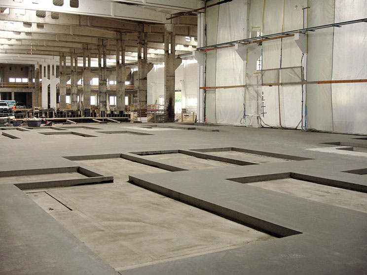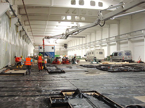 Wärmedämmung, Stahlfaserbeton liefern, einbauen und glätten inklusive Hartstoffeinstreuung und chemischer Betonverdichtung, Fugenschnitt