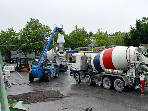 Beton liefern mittels Betonpumpe einbauen und glätten inklusive Hartstoffeinstreuung.